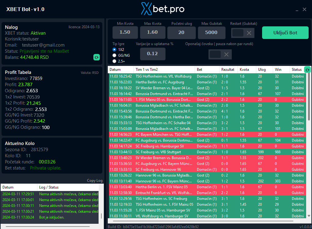 - Započnite Automatizovano Klađenje: Aktivirajte Bot za Klađenje i gledajte kako vaše oklade automatski postavljaju s lakoćom.